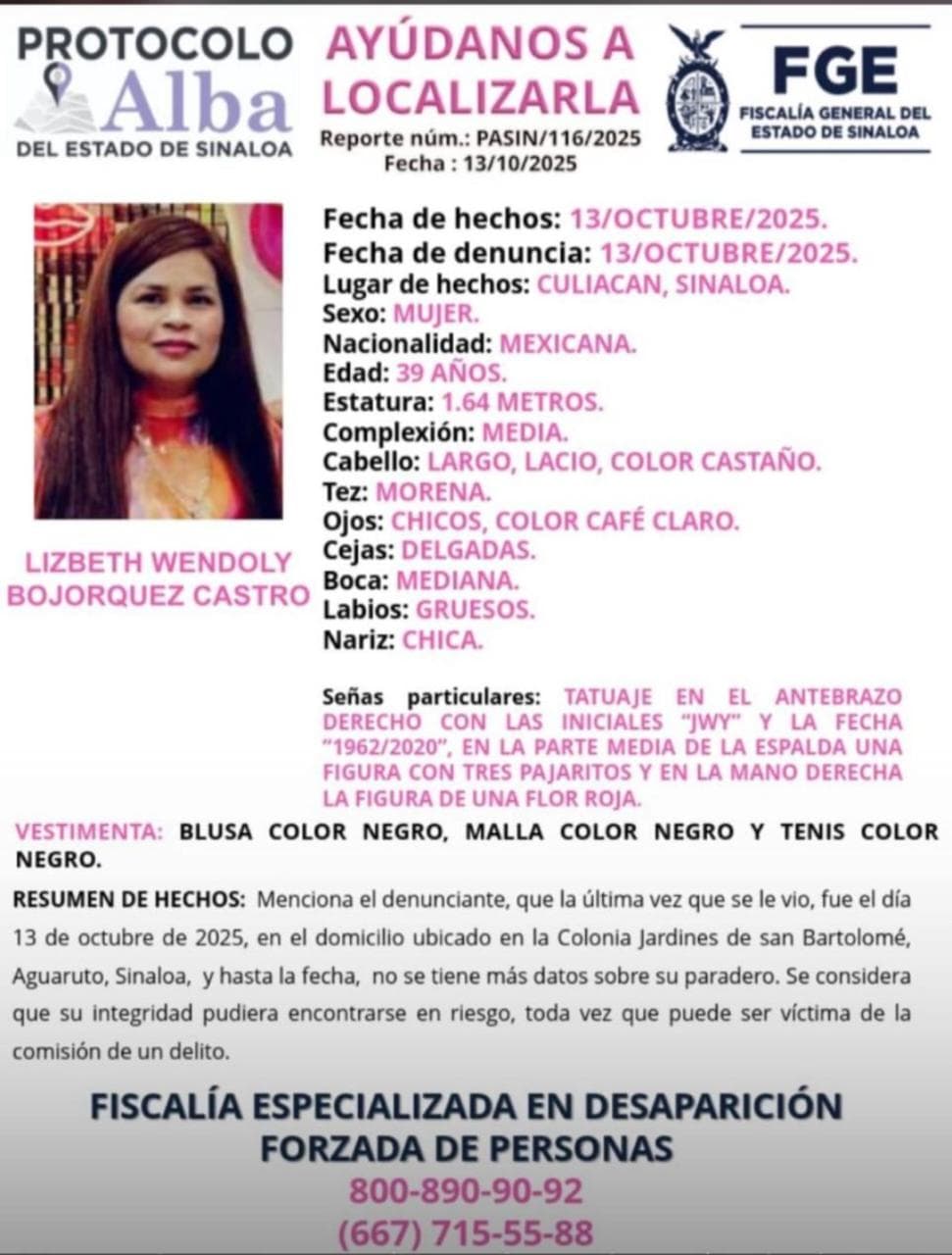 • Activan ficha de búsqueda por mujer privada de la libertad en Aguaruto, Culiacán
