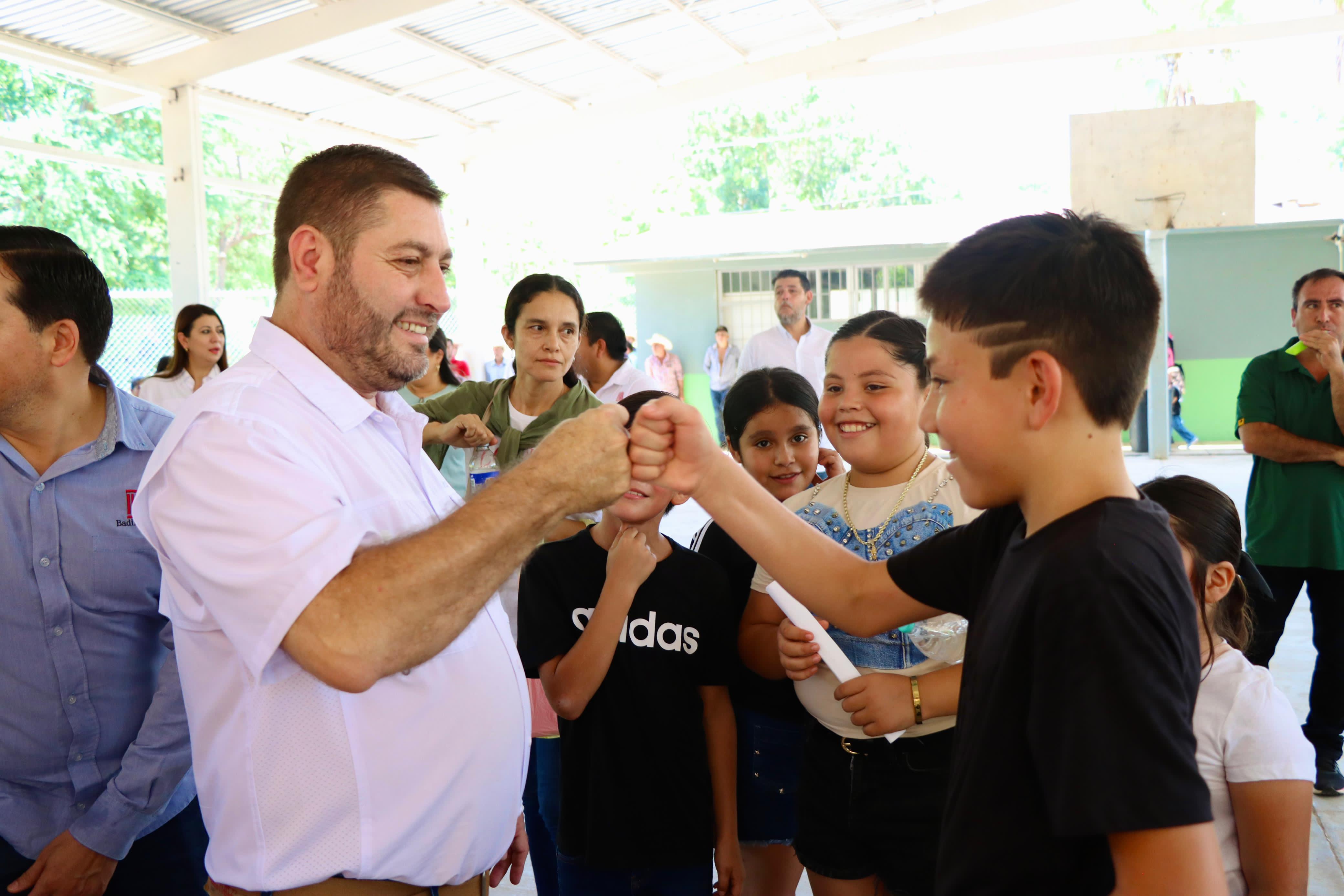 Badiraguato, Sinaloa. – Dando cumplimiento a su palabra, el alcalde de Badiraguato, José Paz López Elenes visitó la sindicatura de Otatillos para dar inicio a la obra que corresponde a la construcción de empedrado ahogado en concreto y alumbrado público en calle rumbo a la secundaria de la comunidad.