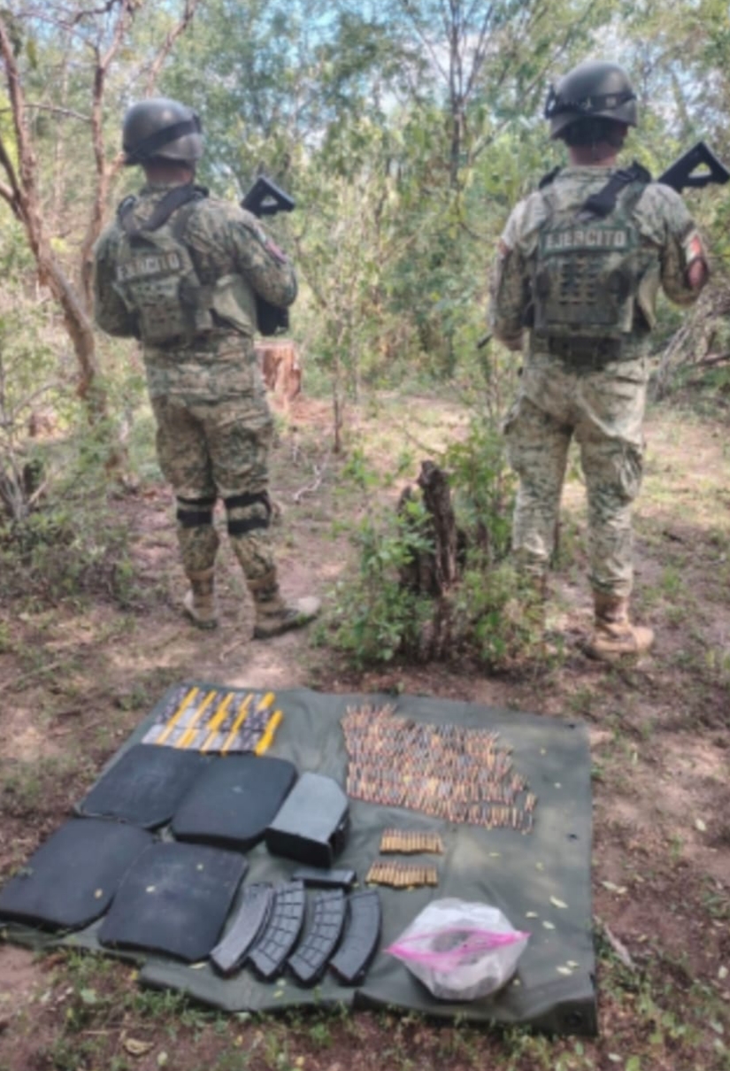 Al realizar reconocimientos terrestres en las inmediaciones del poblado Las Guásimas, perteneciente a la sindicatura de Jesús María, elementos militares localizaron lo siguiente: