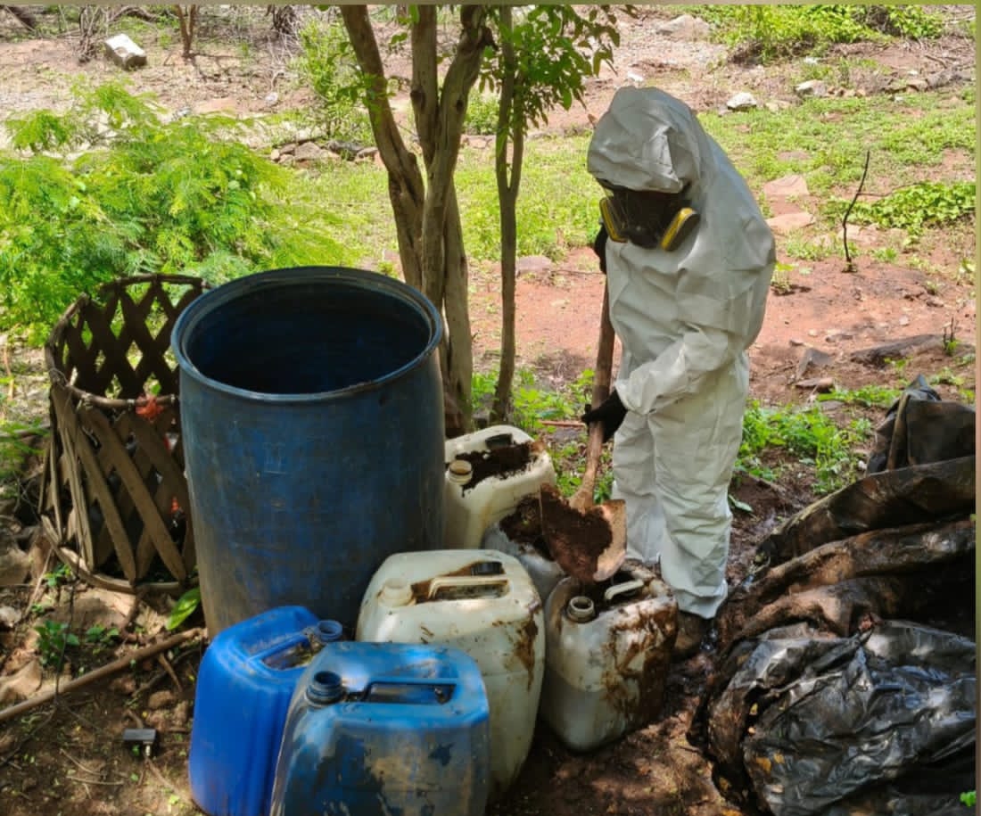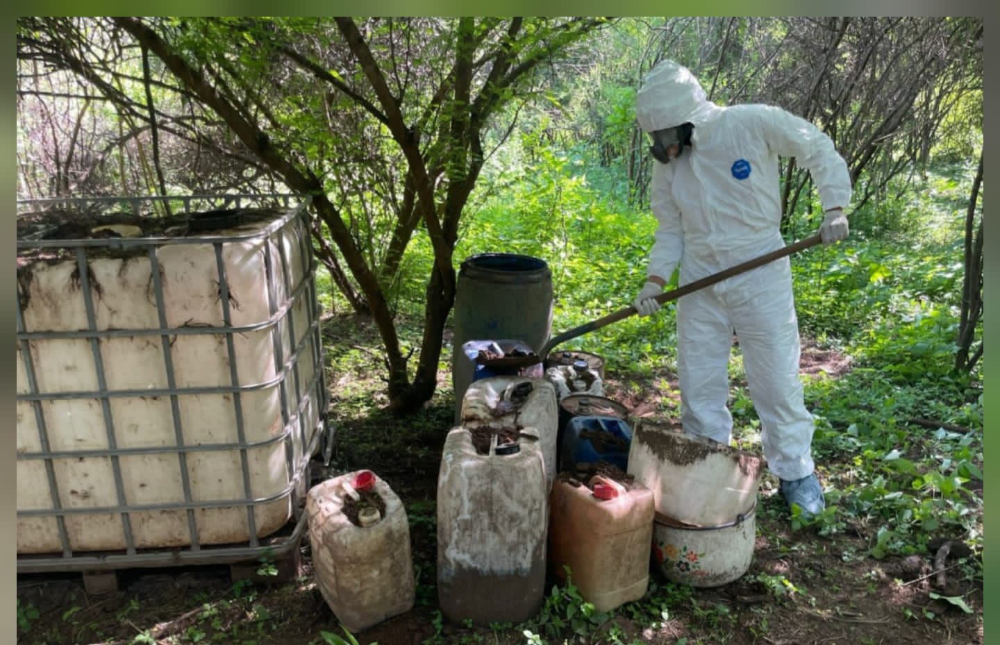Personal militar localizó las áreas de concentración en ambos municipios, con los siguientes materiales para la elaboración de drogas sintéticas: