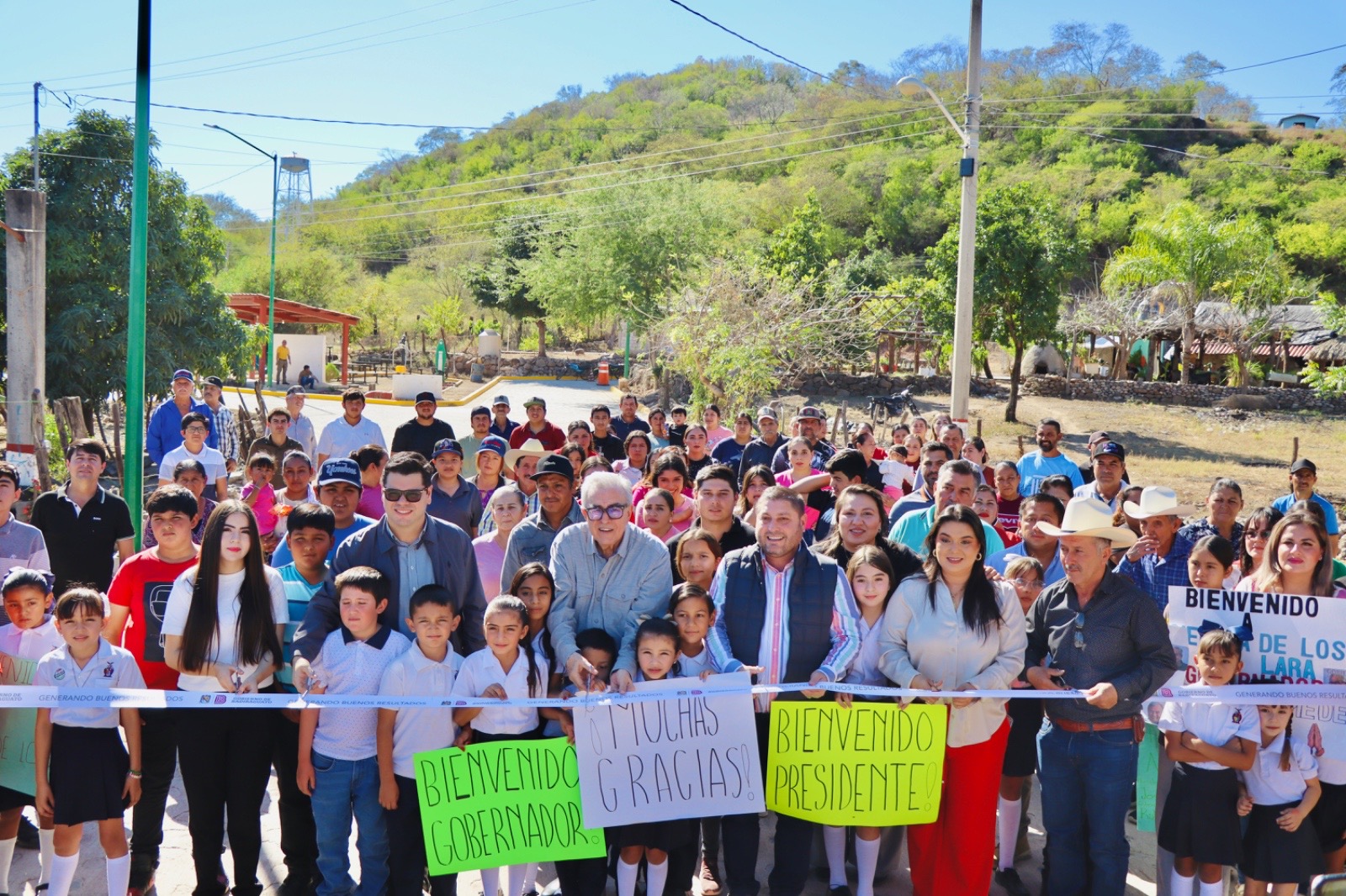 Badiraguato, Sinaloa.- En una intensa jornada de trabajo, el gobernador Rubén Rocha Moya visitó las comunidades La Ciénega de los Lara y El Palmar de los Ríos, donde acompañado del presidente municipal José Paz López Elenes, inauguró la pavimentación de la calle principal de ambas poblaciones rurales, y en la cabecera municipal, la pavimentación de una importante calle que comunicará el bulevar de acceso con el malecón, obras en las que se invirtieron 16 millones 435 mil pesos.