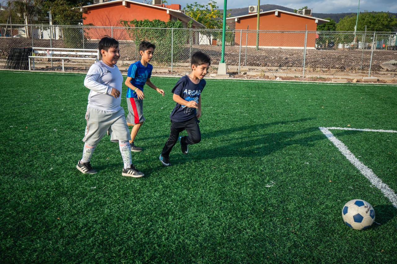 El referente deportivo está compuesto por pasto sintético, barda perimetral, alumbrado público y porterías totalmente nuevas.