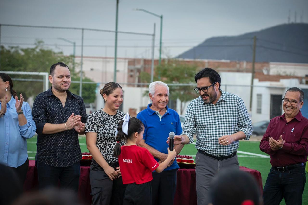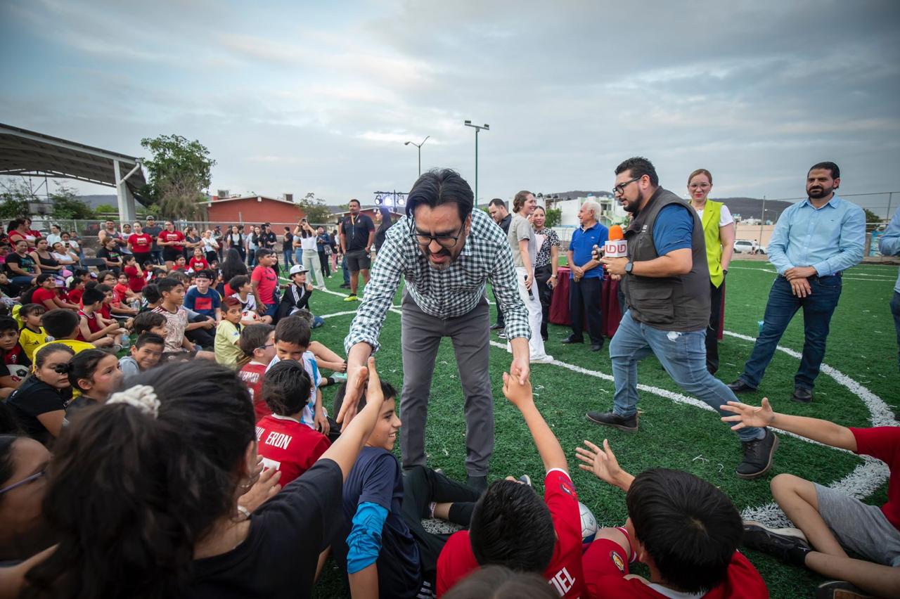 Culiacán, Sin.– En un ambiente de fiesta deportiva, el alcalde Juan de Dios Gámez Mendívil hizo entrega oficial de una cancha de futbol en el fraccionamiento Alturas del Sur.