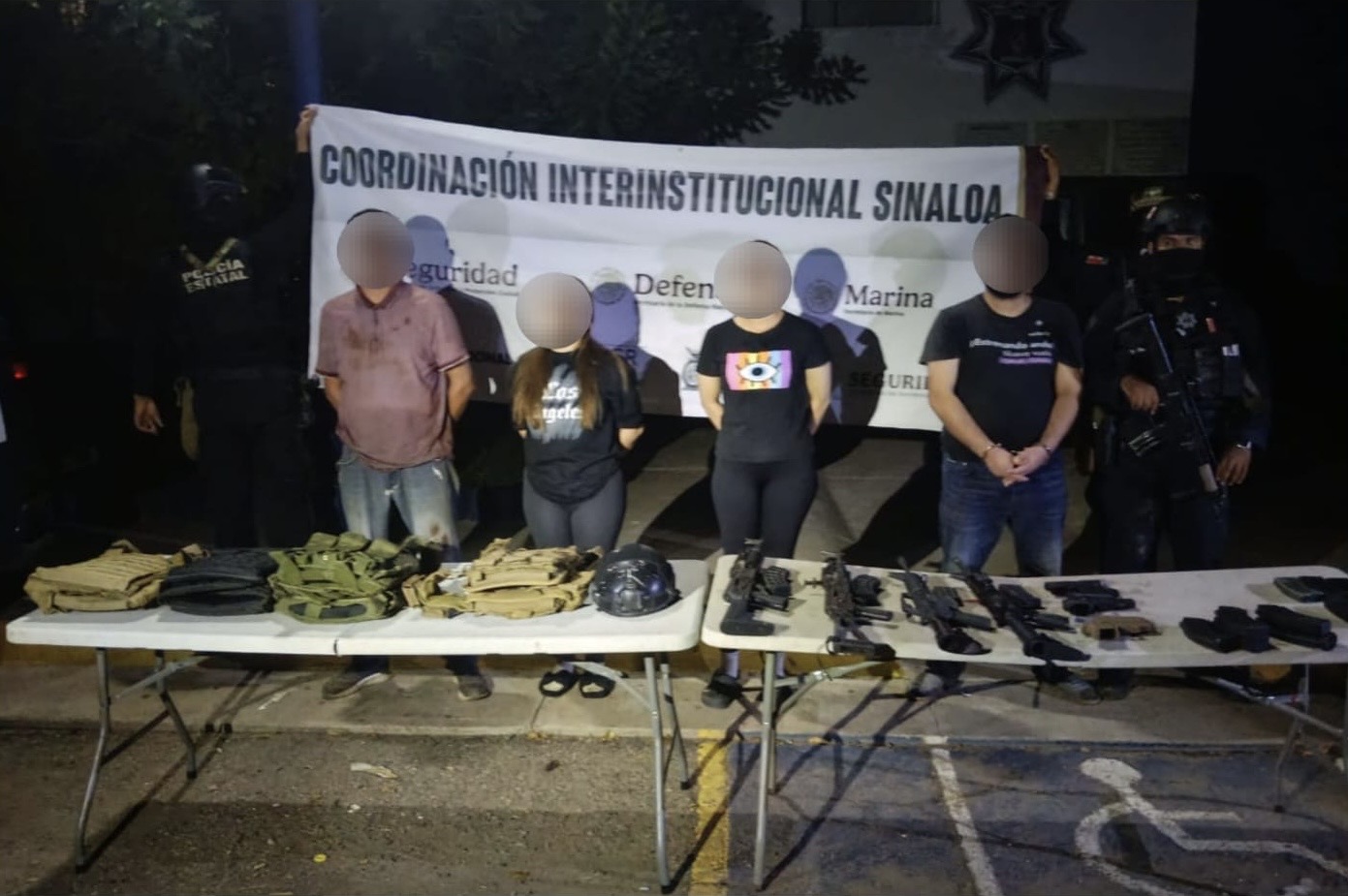 Culiacán, Sinaloa, 14 de agosto de 2025.- Elementos de la Policía Estatal Preventiva y del Ejército en coordinación con la Guardia Nacional, la Secretaría de Marina, la Secretaría de Seguridad y Protección Ciudadana, aseguraron a 6 personas, armas, cargadores, vehículos, equipo táctico y un inmueble en Culiacán.