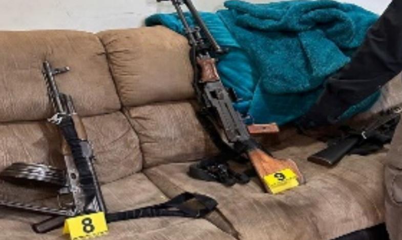 Asegura FGR seis vehículos, armas, droga y equipo táctico en dos domicilios de Salvador Alvarado