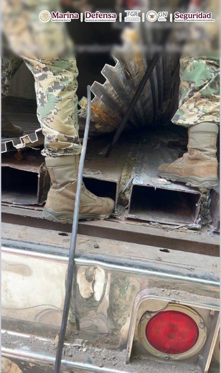 El hallazgo se logró durante labores de vigilancia, verificación y control en el recinto portuario, cuando efectivos de la Unidad Naval de Protección Portuaria de Mazatlán inspeccionaron la unidad con equipo de rayos “X” y el apoyo de tres binomios caninos.