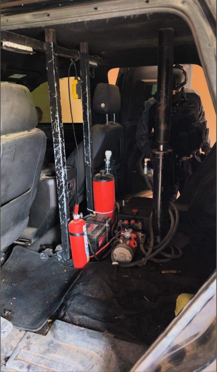 El hecho tuvo lugar durante recorridos de prevención y vigilancia en inmediaciones del poblado La Higuerita, donde, al patrullar, elementos del GOES ubicaron una camioneta Tahoe de la marca Chevrolet con dos neumáticos ponchados; al aproximarse a la unidad, se percataron de que contaba con blindaje artesanal, además de una torreta para ametralladora con sistema hidráulico. Asimismo, al interior de la camioneta se localizó lo siguiente: