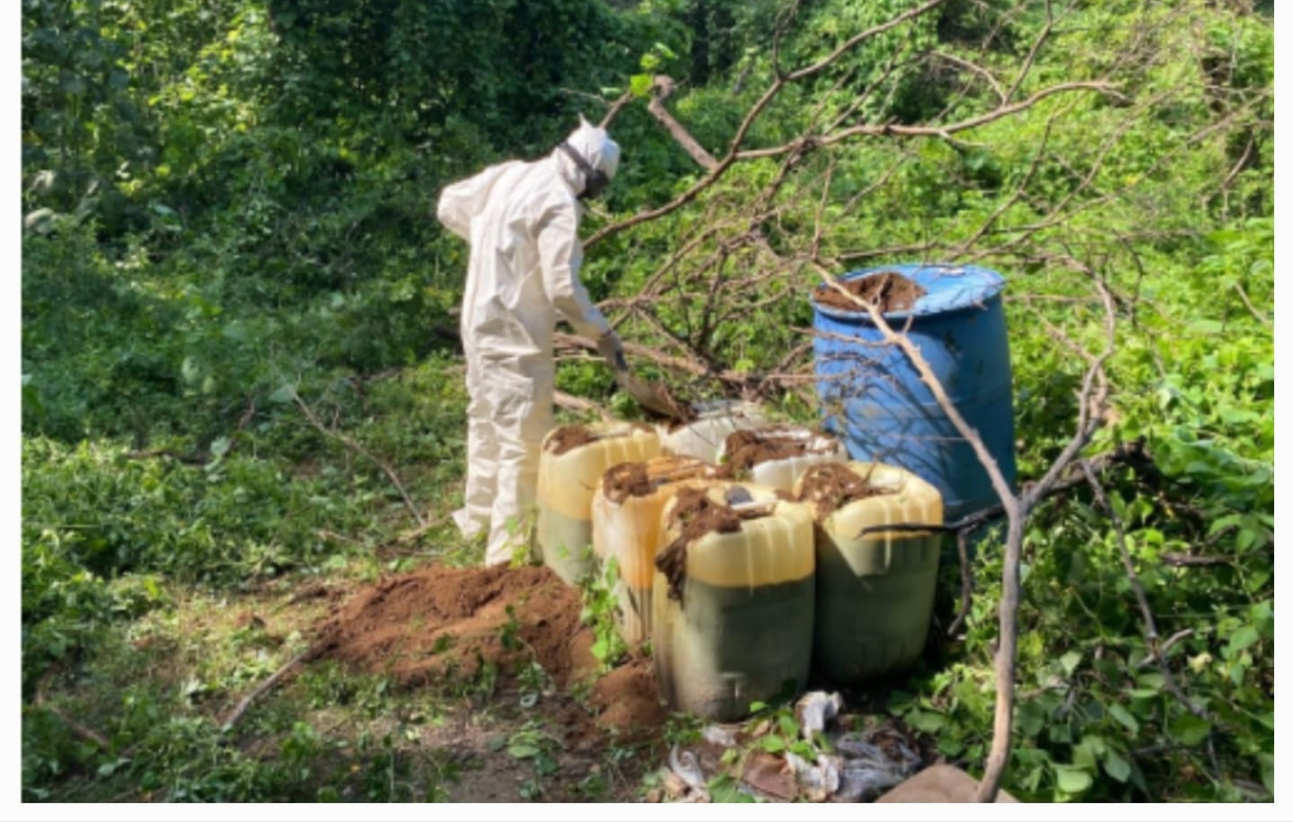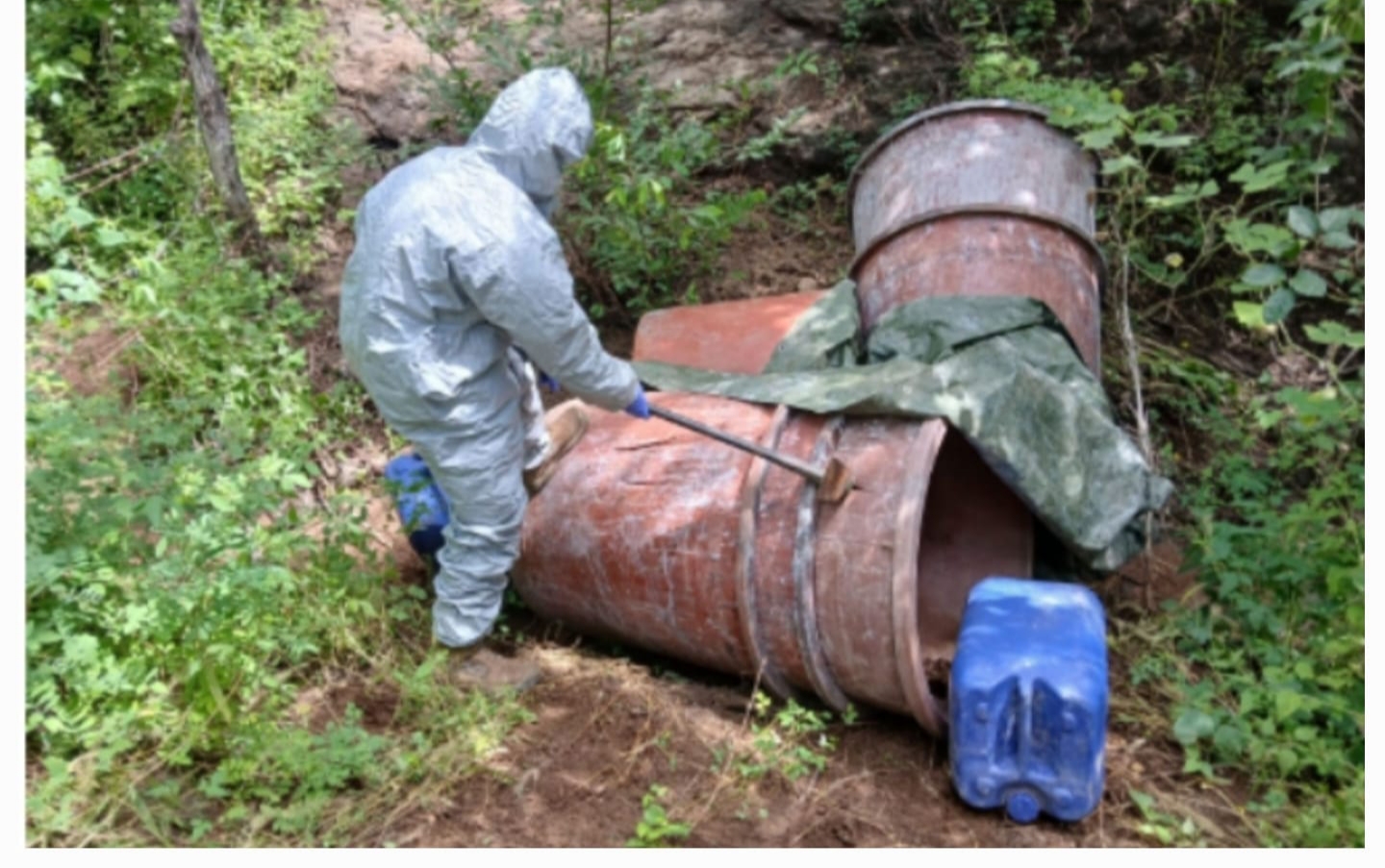 Culiacán, Sinaloa. – Autoridades aseguraron en Culiacán tres áreas de almacenamiento de sustancias químicas para la elaboración de drogas sintéticas.