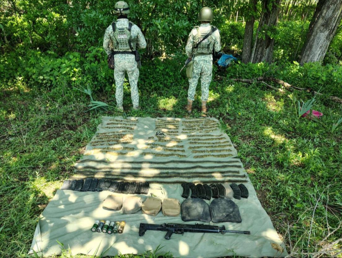 San Ignacio, Sinaloa. – Autoridades aseguraron armamento, municiones, granadas y un artefacto explosivo en San Ignacio.