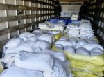 • 2 estibas con costales de cartón de aproximadamente 20-25 kilos cada uno, con una sustancia granulada de color blanco con características similares a la droga conocida como metanfetamina, en total 80 costales.