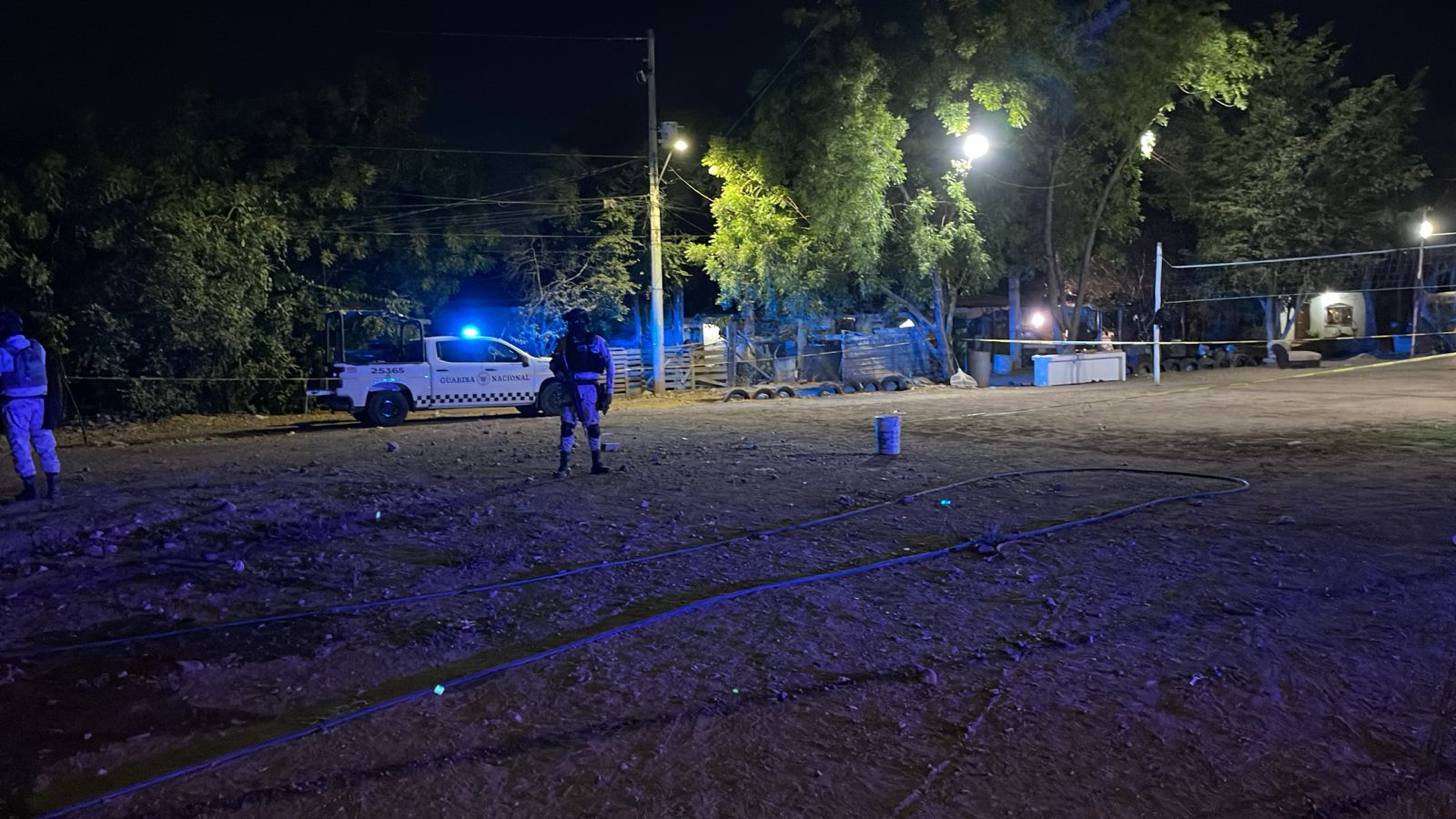 Elementos de la Guardia Nacional arribaron al sitio como primeros respondientes y procedieron a acordonar la escena del crimen. En el centro de la cancha deportiva quedaron rastros de sangre y varios casquillos percutidos de arma de fuego.