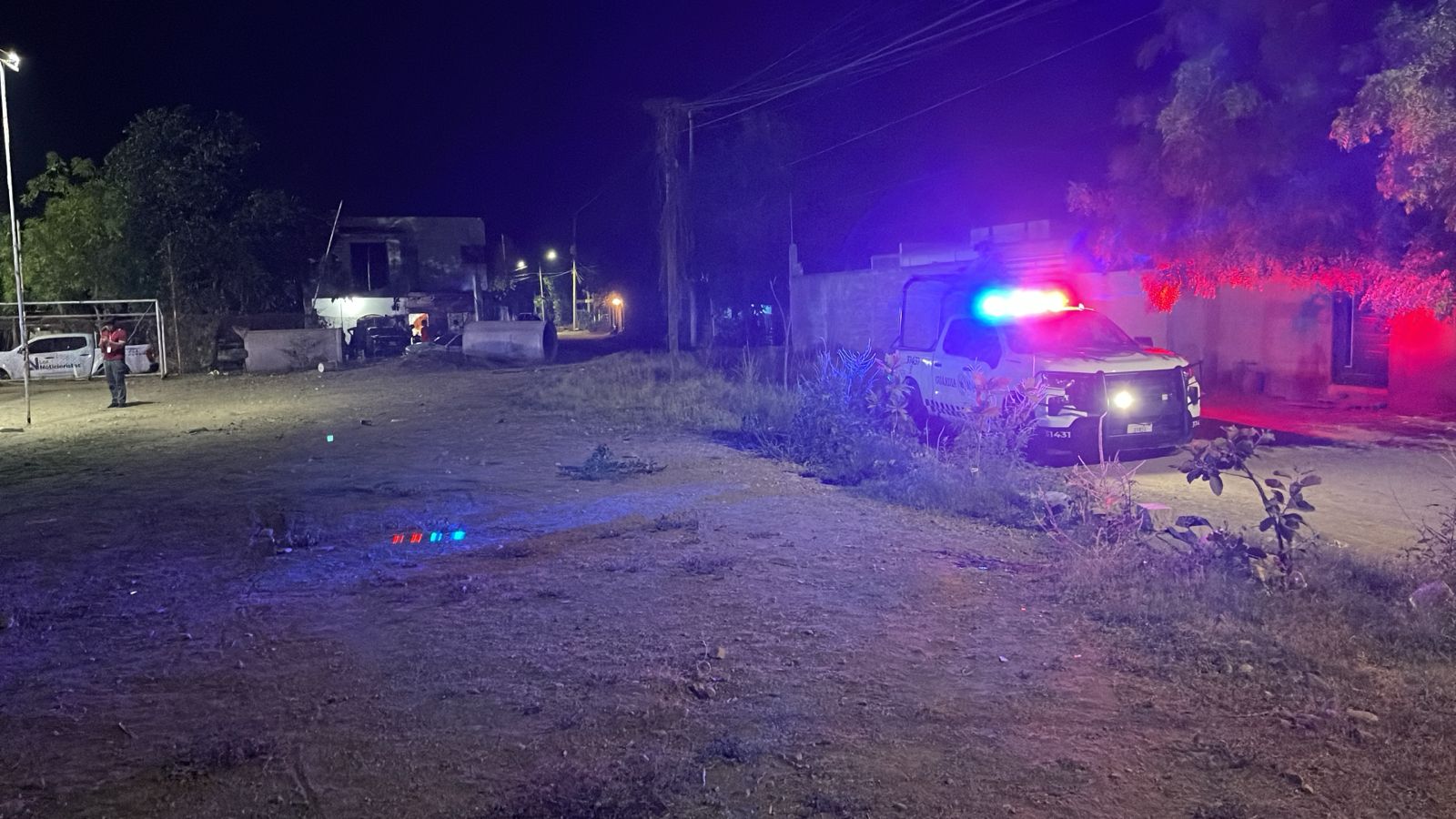 Elementos de la Guardia Nacional arribaron al sitio como primeros respondientes y procedieron a acordonar la escena del crimen. En el centro de la cancha deportiva quedaron rastros de sangre y varios casquillos percutidos de arma de fuego.