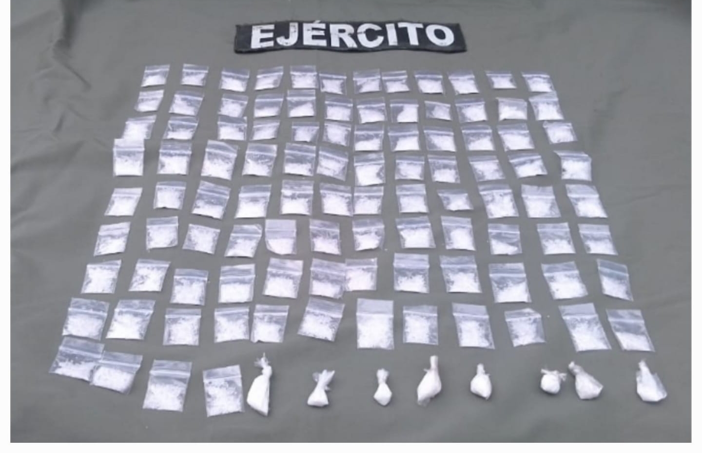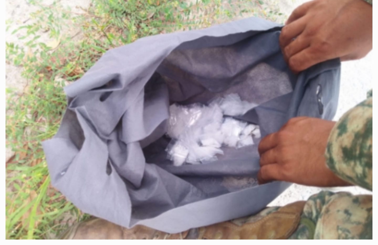 Al realizar recorridos terrestres en las inmediaciones de la colonia Miguel Alemán, los militares observaron a una persona que, al notar la presencia de la autoridad, emprendió la huida, dejando en el lugar una bolsa. Ante esto, los elementos castrenses se acercaron y encontraron en el interior de la bolsa lo siguiente: