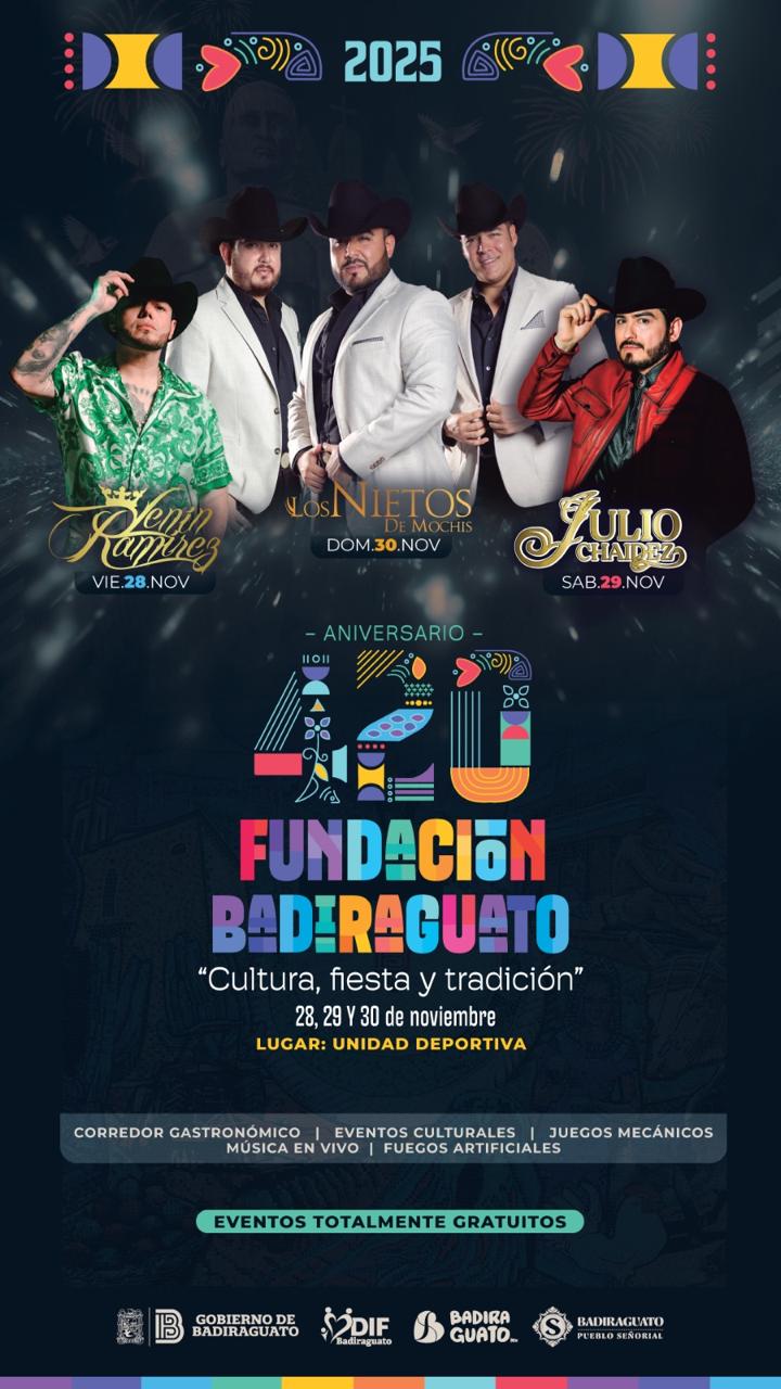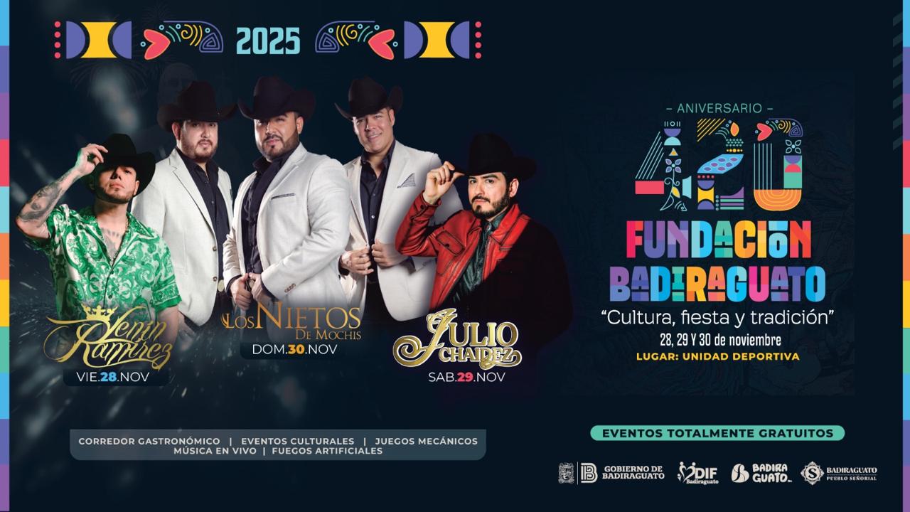 Badiraguato celebrará aniversario 420 con la presentación de Lenin Ramírez, Julio Chaidez y Los Nietos