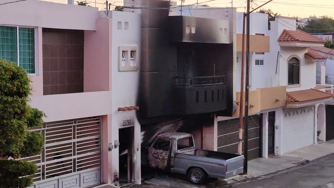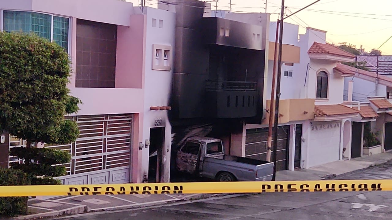 Vecinos del sector reportaron al número de emergencias un incendio, por lo que al sitio se trasladaron elementos de Bomberos de Culiacán, quienes encontraron un domicilio de dos pisos envuelto en llamas, así como dos vehículos en la cochera que eran consumidos por el fuego.
