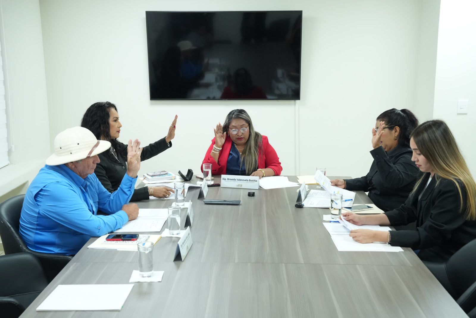 En la reunión estuvieron presentes la diputada presidenta de la Comisión, Briseida Valenzuela Buichia; la diputada secretaria, Reynalda Leyva Urías; la diputada vocal, Elizabeth Ramírez Tirado y el diputado vocal, Guadalupe Santana Palma León.