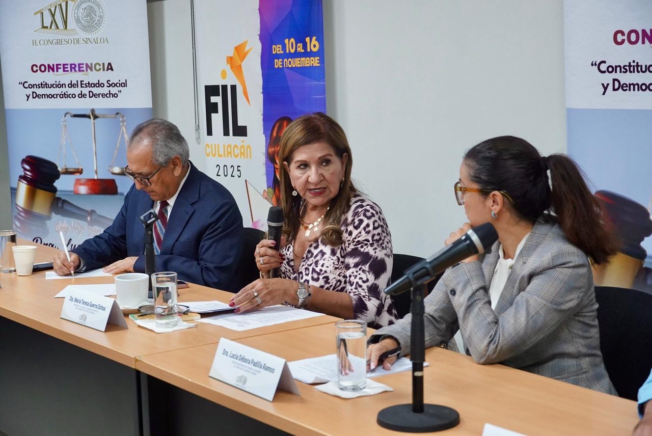 Culiacán, Sinaloa.- En el marco de las actividades de fortalecimiento académico y legislativo impulsadas por la 65ª Legislatura, el Congreso del Estado de Sinaloa recibió a la jurista española Dra. Lucía Débora Padilla Ramos, especialista en derecho constitucional y administrativo, quien impartió la conferencia “Constitución y Estado Social y Democrático de Derecho”.