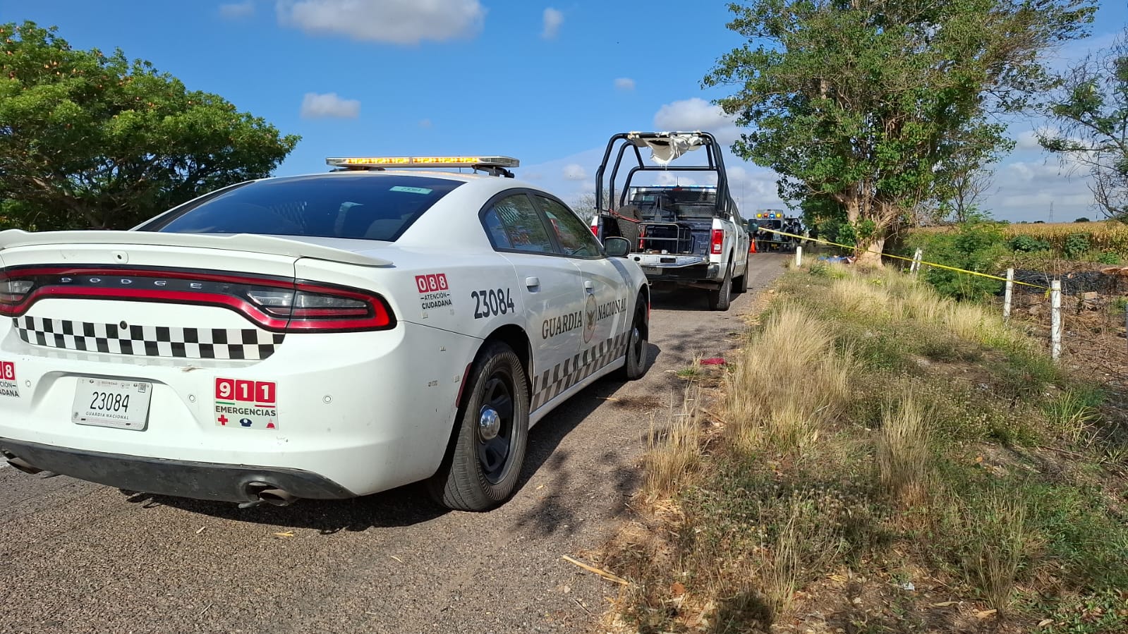 Navolato, Sinaloa. – Los cuerpos sin vida de dos hombres fueron localizados la mañana de este viernes 06 de junio recargados en un árbol a la orilla de la autopista Benito Juárez, mejor conocida como La Costera, en la comunidad de Balbuena, sindicatura de San Pedro, en Navolato.