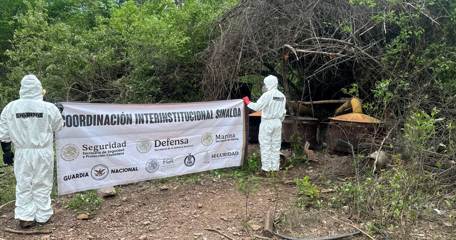 Culiacán, Sinaloa. – Autoridades localizaron y neutralizaron un laboratorio clandestino empleado para la elaboración de sustancias ilícitas, en el poblado de Abuya, en el municipio de Culiacán, Sinaloa.