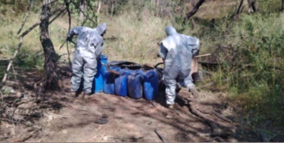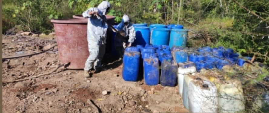 Culiacán, Sinaloa. – Autoridades localizaron y aseguraron dos áreas de almacenamiento de precursores químicos.