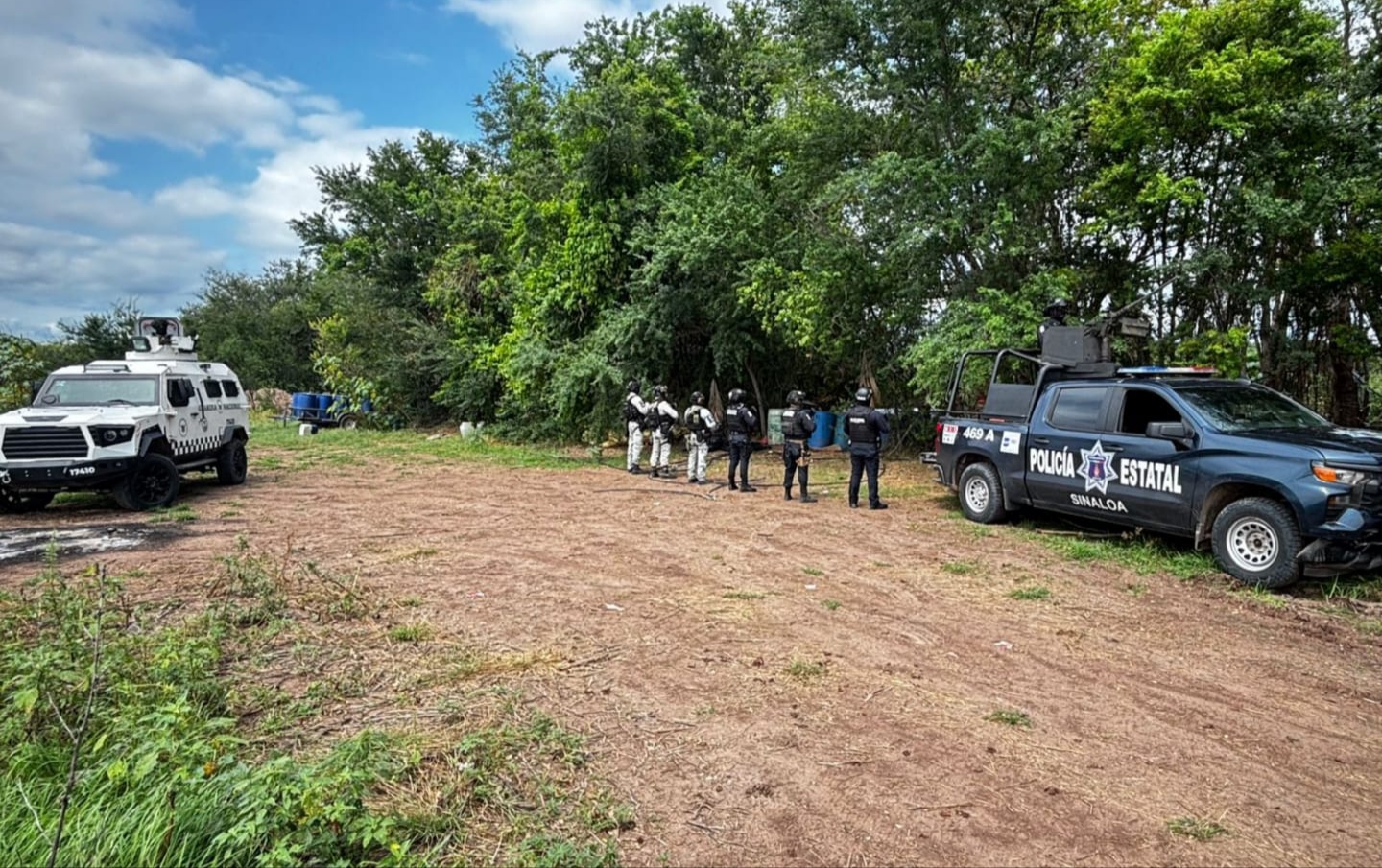 El personal de la Policía Estatal, con apoyo de la Guardia Nacional, localizó un área de concentración en el poblado de Rancho Viejo.