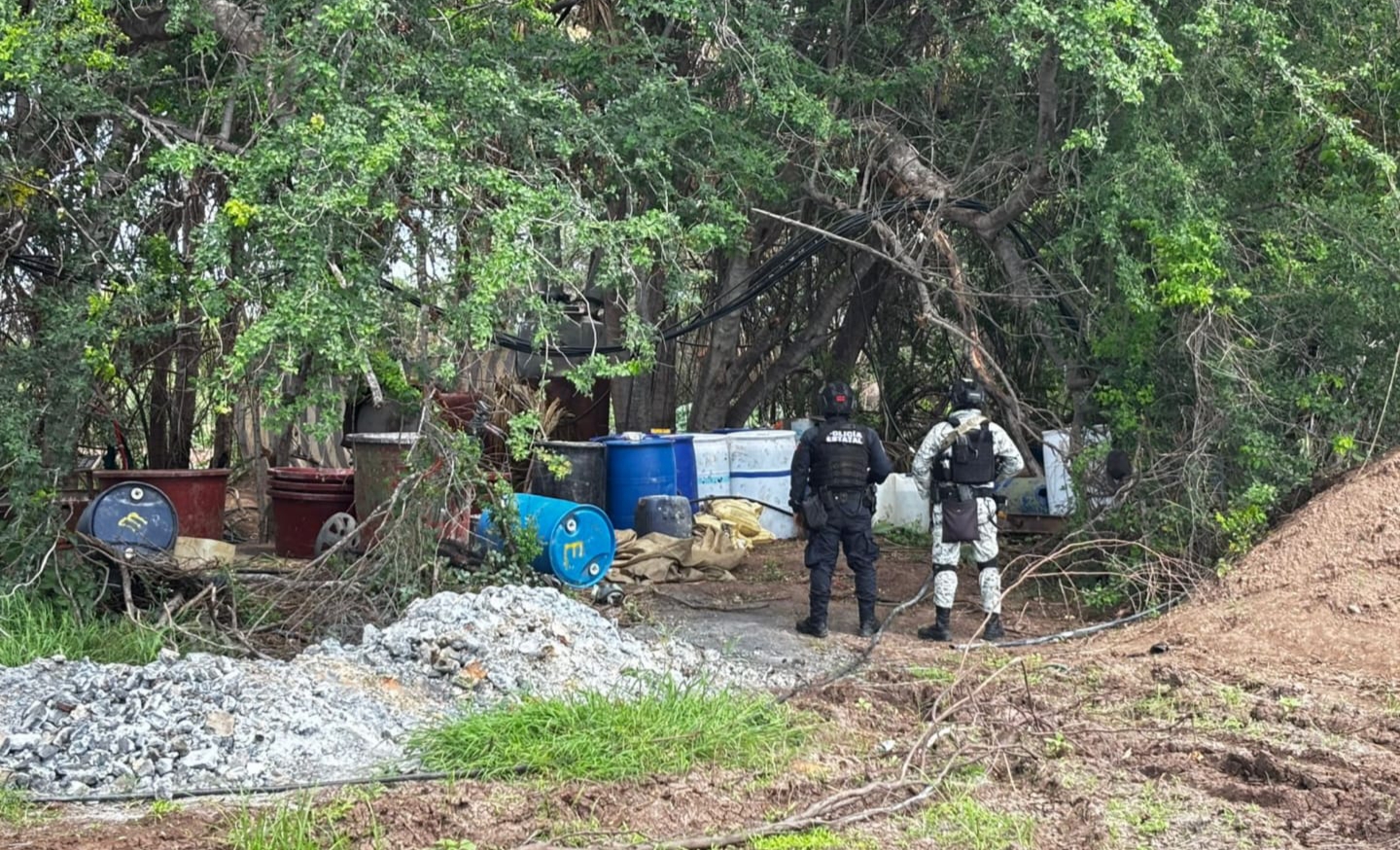 Mocorito, Sinaloa. – Autoridades aseguraron un área de concentración de sustancias para la elaboración de drogas en Mocorito.
