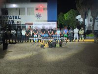Rosario, Sinaloa. – Elementos de la Secretaría de Seguridad Pública de Sinaloa, detuvieron en el municipio de Rosario a 12 civiles, a quienes les aseguraron fusiles, cargadores, municiones, equipo táctico y vehículos.