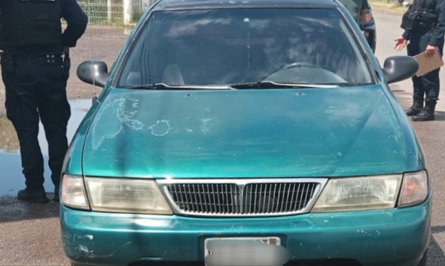 Derivado de ello, se les dio seguimiento y se les pudo dar alcance metros adelante. Al verificar el estatus del automóvil de la marca Nissan, línea Sentra de color verde, en el que viajaban, este arrojó que contaba con reporte de robo.