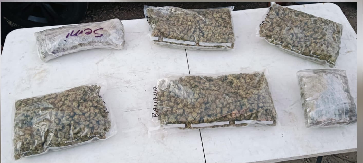 • 6 paquetes con hierba verde y seca, con características de la marihuana, con un peso aproximado de 3 kilogramos