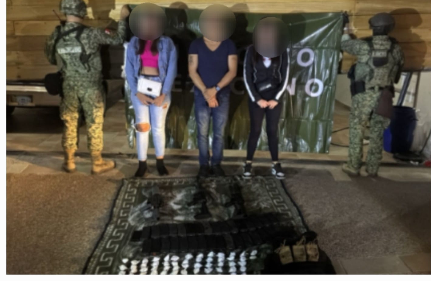 Culiacán, Sinaloa. – Autoridades aseguraron a dos mujeres y un hombre junto con dos vehículos, armas largas, cargadores, cartuchos, dosis de presunta droga y un chaleco en la capital sinaloense.