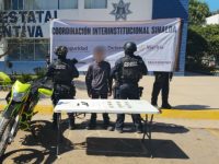 Culiacán, Sinaloa. – Elementos de la Secretaría de Seguridad Pública de Sinaloa, detuvieron en Culiacán a un menor de edad, a quien se le aseguró un arma corta, droga y una motocicleta robada.