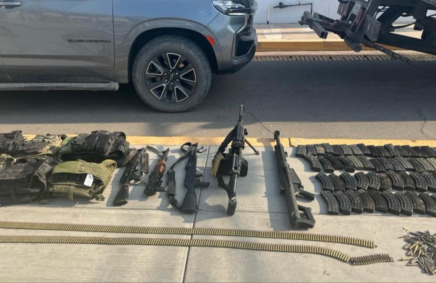 Al revisarlas, se ubicó armamento, municiones y equipo táctico en su interior, por lo que se aseguró lo siguiente: