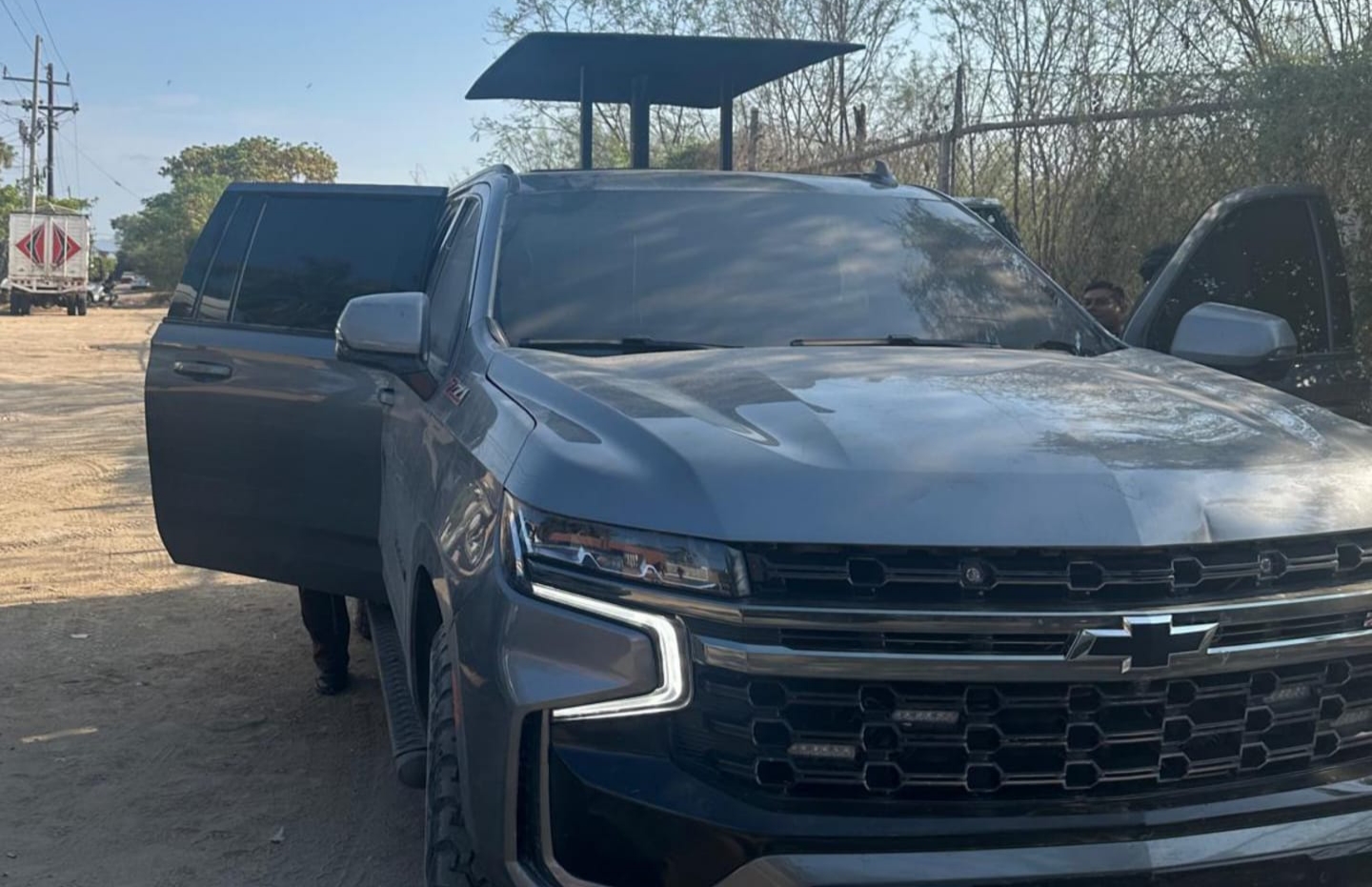Al ampliar la revisión del área, se localizaron dos camionetas recientemente abandonadas con puertas abiertas: una Chevrolet Suburban de color gris y una camioneta RAM de color blanco, ambas con blindaje. Se realizó la búsqueda de los ocupantes, obteniendo resultados negativos.