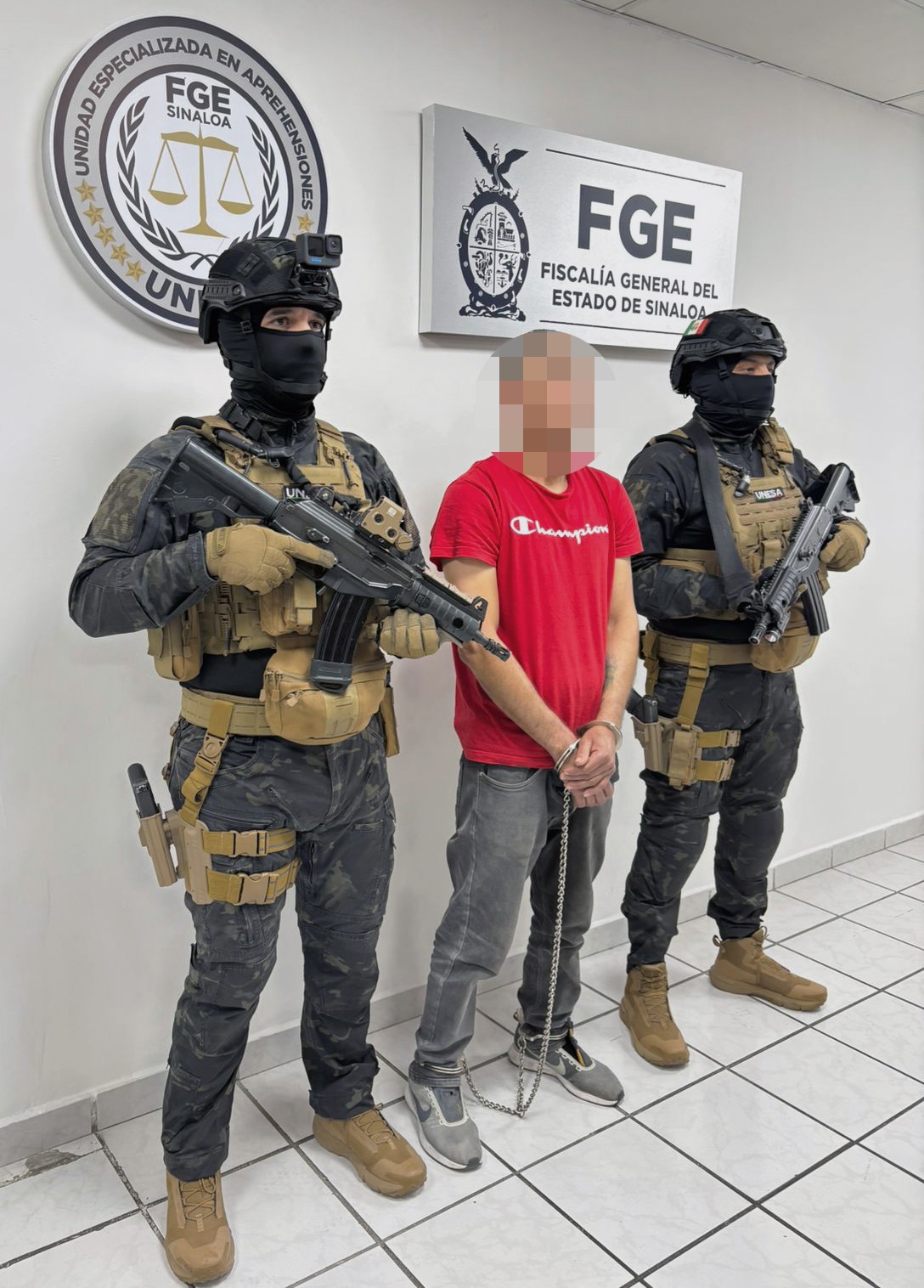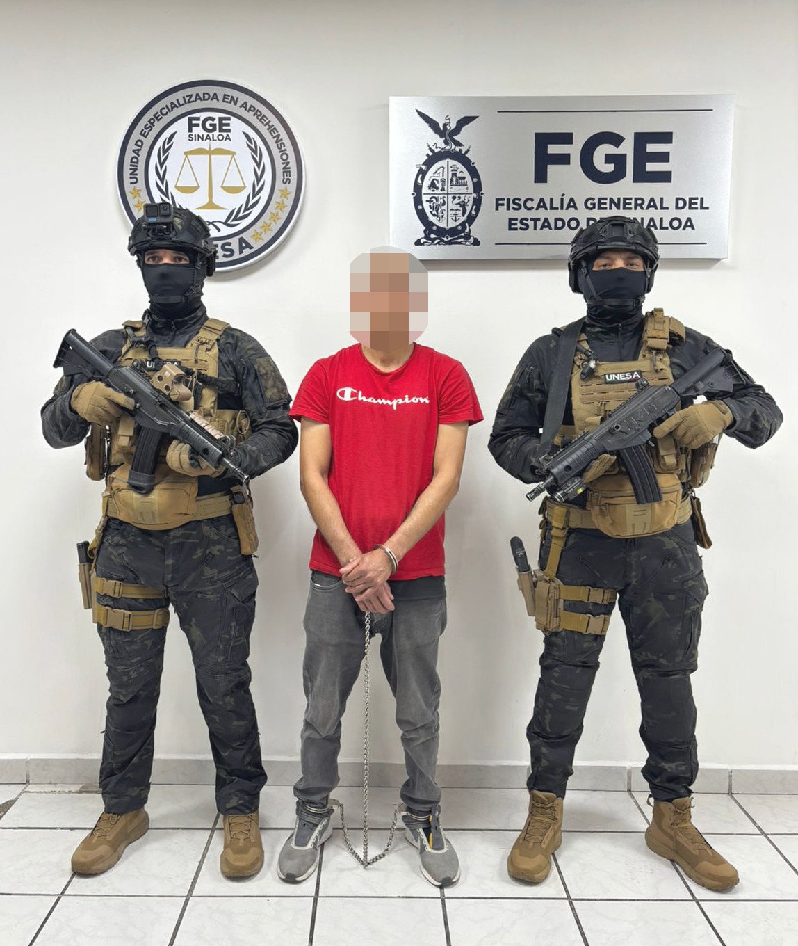 Como resultado de las investigaciones realizadas, Edgar Refugio “N” fue ubicado en la ciudad de Tijuana, Baja California, donde fue detenido por elementos de UNESA. Posteriormente, fue trasladado a Culiacán y puesto a disposición de la autoridad judicial competente, quedando interno en el Centro Penitenciario de Aguaruto.