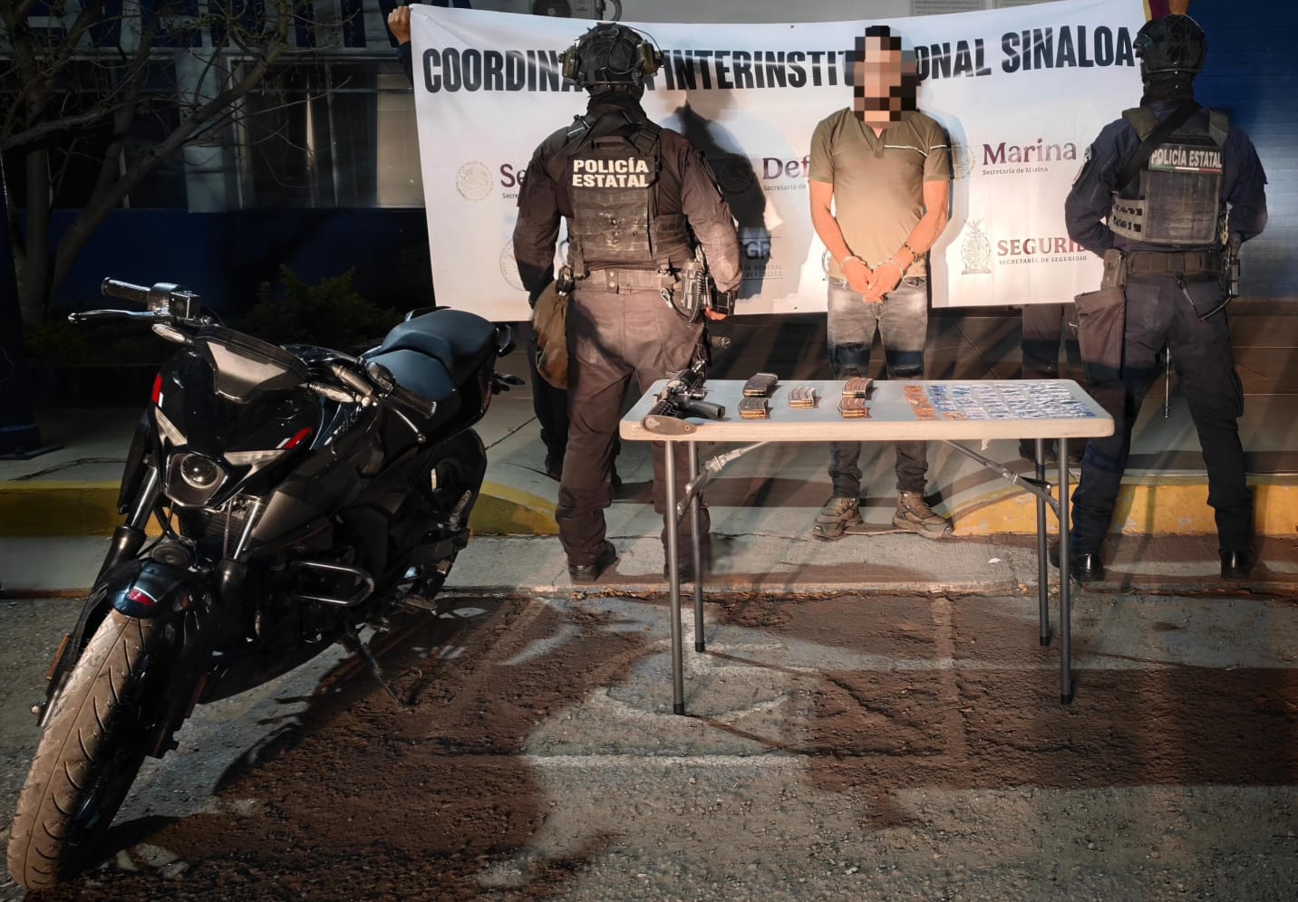 Navolato, Sinaloa. – Elementos de la Secretaría de Seguridad Pública del Estado, detuvieron a un civil en el municipio de Navolato, a quien se le aseguró un arma larga, cargadores, cartuchos, dosis de presunta droga y una motocicleta con reporte de robo.