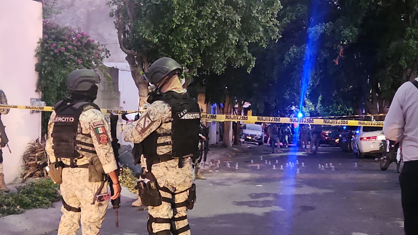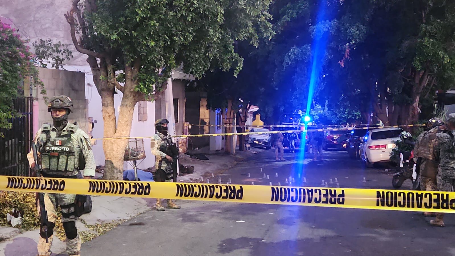 Uno de los cuerpos quedó sobre la banqueta, mientras que otro quedó en la entrada principal; hasta el momento no han sido identificados.