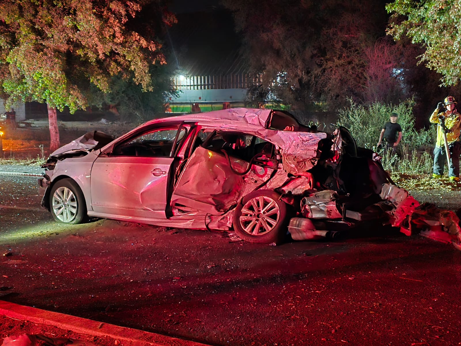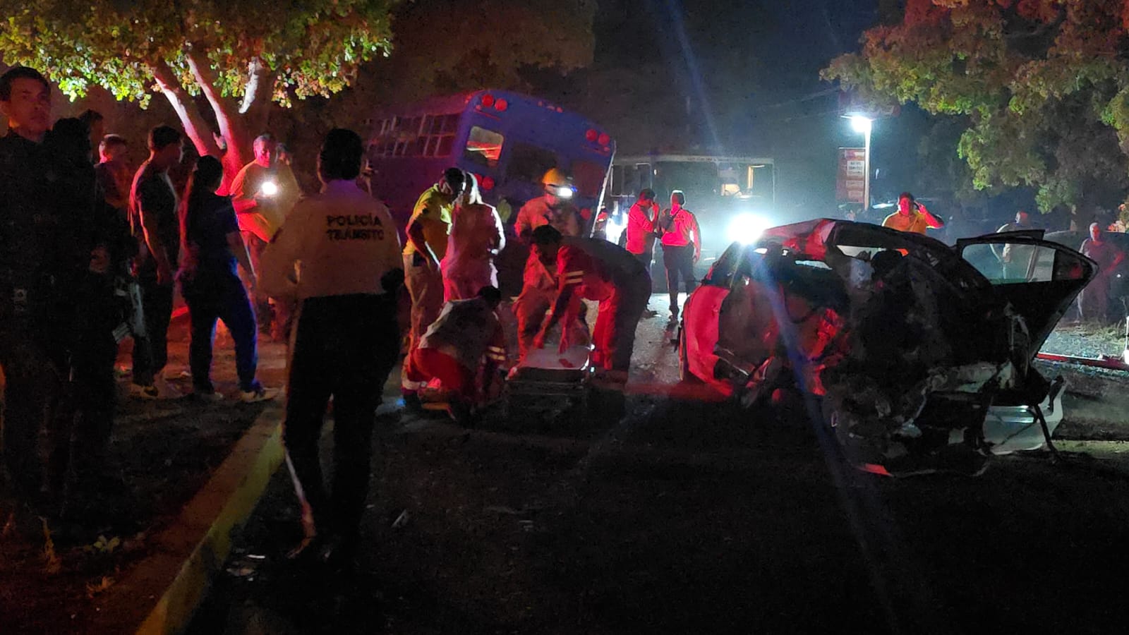 Según los primeros informes, el vehículo compacto invadió el carril del camión, provocando que este último terminara estrellado contra un árbol tras el fuerte impacto.