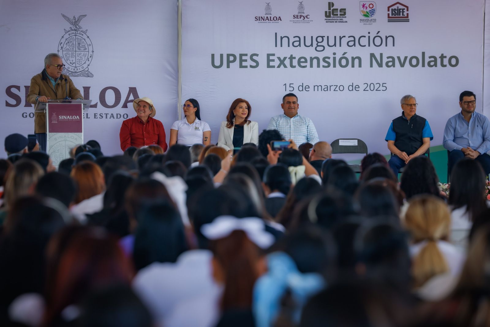 Navolato, Sinaloa.- El gobernador Rubén Rocha Moya inauguró el edificio de la Extensión Navolato de la Universidad Pedagógica del Estado de Sinaloa (UPES), cuya inversión fue de 35.5 millones de pesos, con lo cual ahora esta institución contará con un edificio propio por primera vez en 13 años, pues desde 2012 cuando inició operaciones lo hacía en instalaciones rentadas.