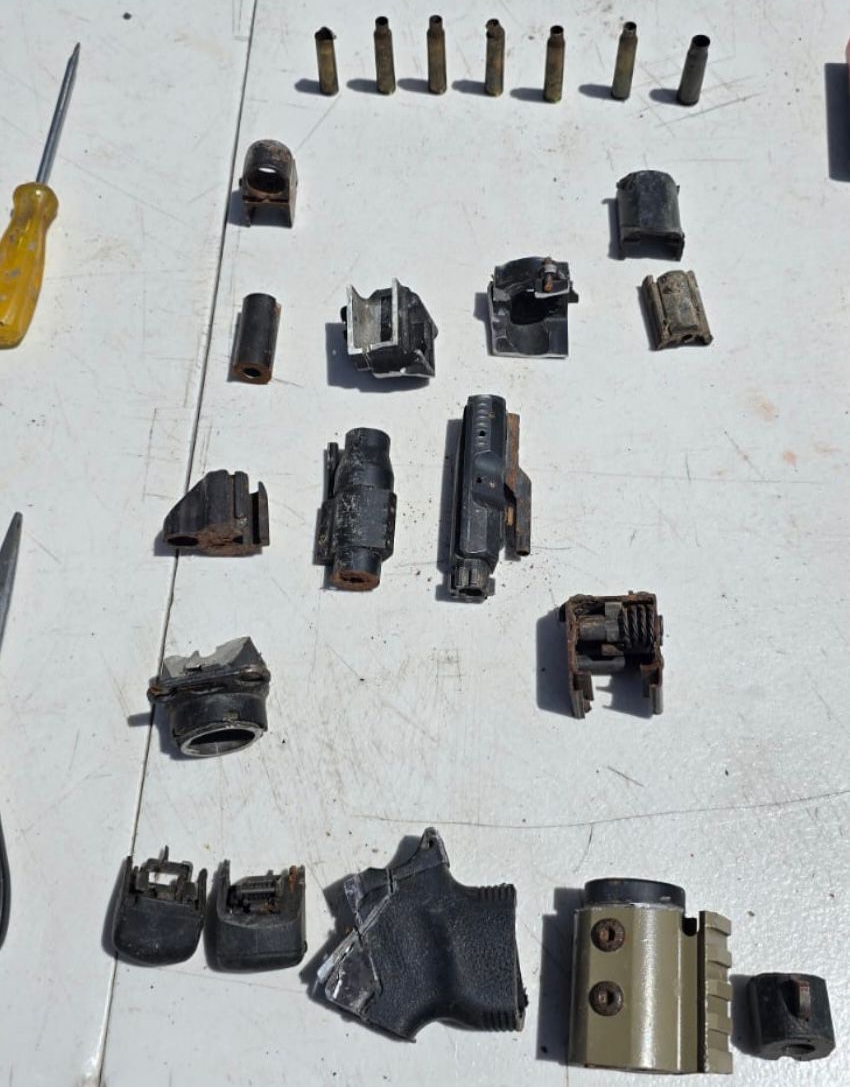 • 16 piezas diversas de armas de diferentes calibres destruidas con esmeril.