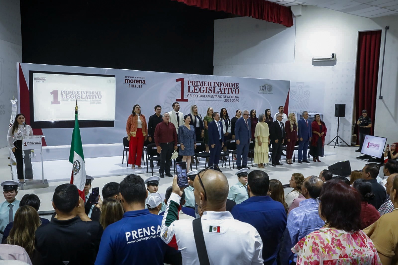 Salvador Alvarado, Sinaloa. – El gobernador Rubén Rocha Moya asistió al informe conjunto que rindieron las diputadas y diputados locales de Morena de la región del Évora, de la 65 Legislatura del Congreso del Estado, donde felicitó el trabajo de las y los legisladores y reconoció el apoyo que le otorgan a su gobierno para poder llevar los beneficios sociales a la población.