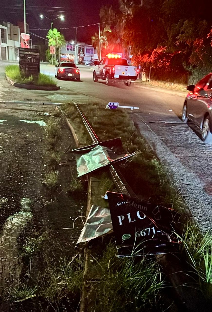 También se atendieron los casos de dos luminarias, una en el Centro Cívico Constitución y la otra en Stanza Toscana, así como un anuncio vial que se desprendió de su base en Costerita y Obregón, en el sector sur de la ciudad.
