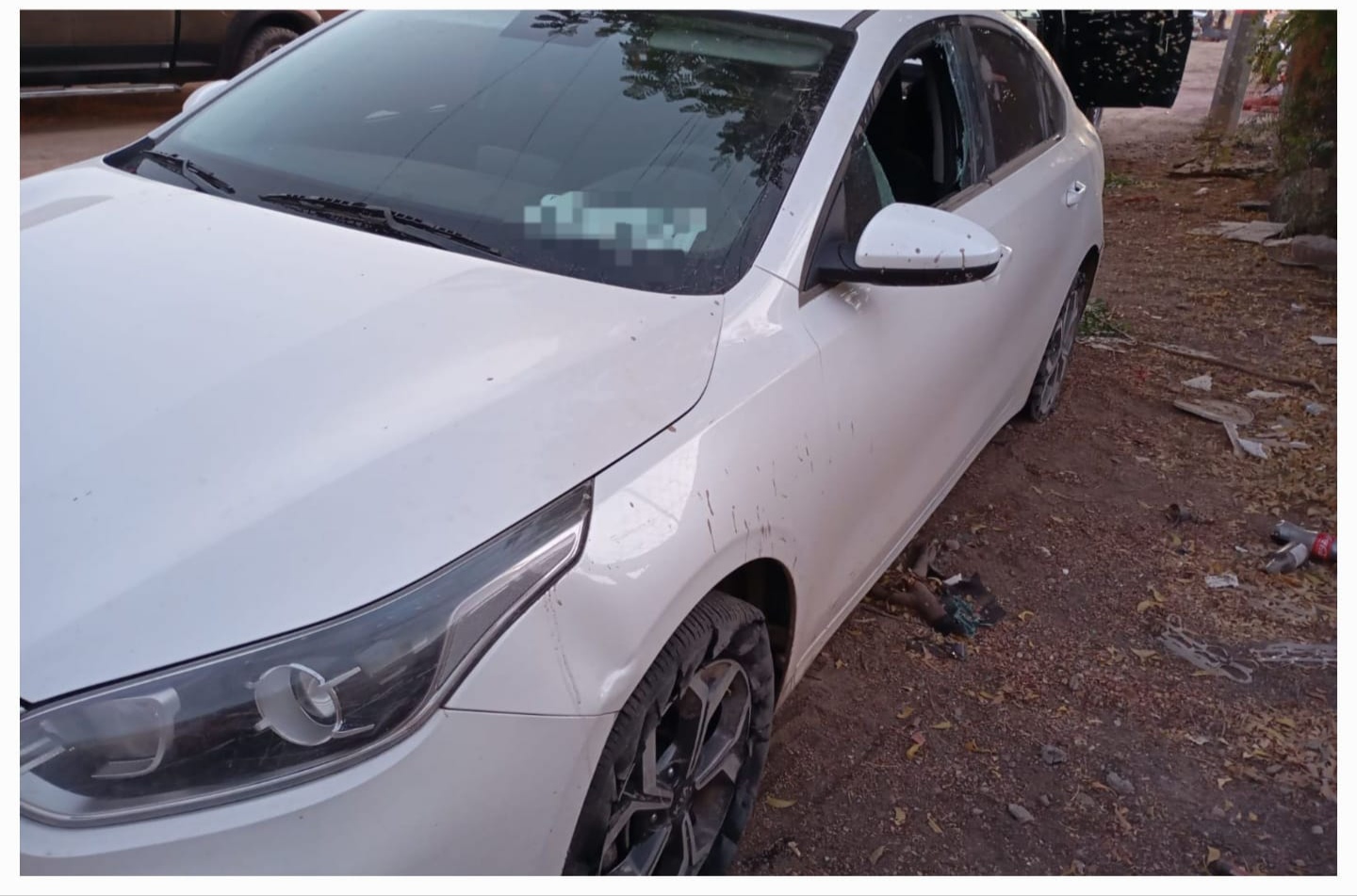 Hallan abandonado un Kia Forte con la carrocería dañada y vidrios quebrados al parecer por disparos, en Culiacán