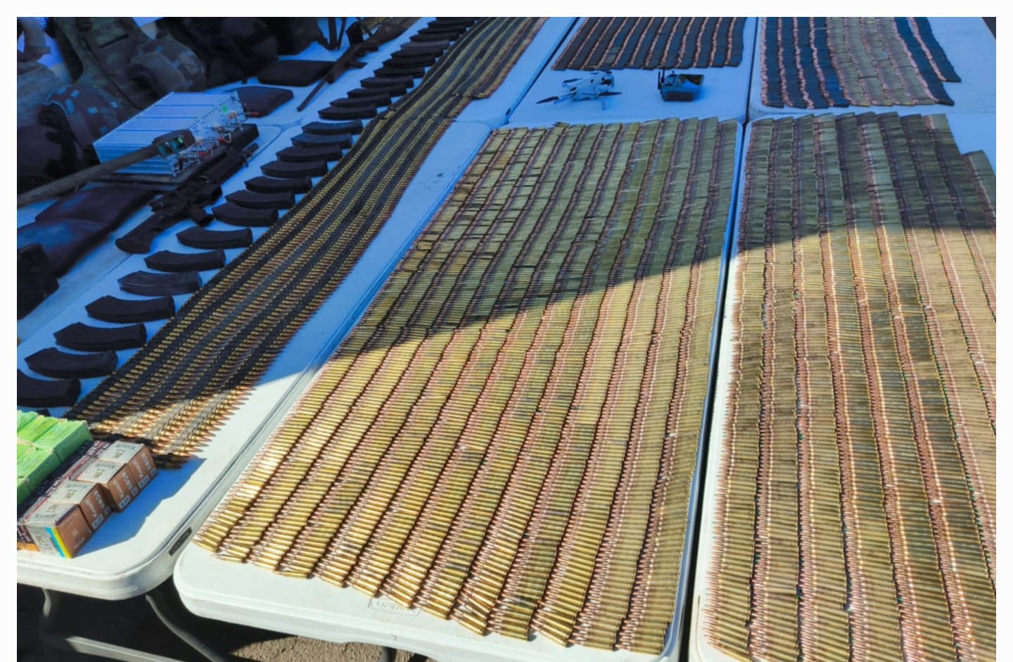 Hallan de todo en San Ignacio: dron, antenas, inhibidores, más de 200 explosivos, más de 14 mil cartuchos y más