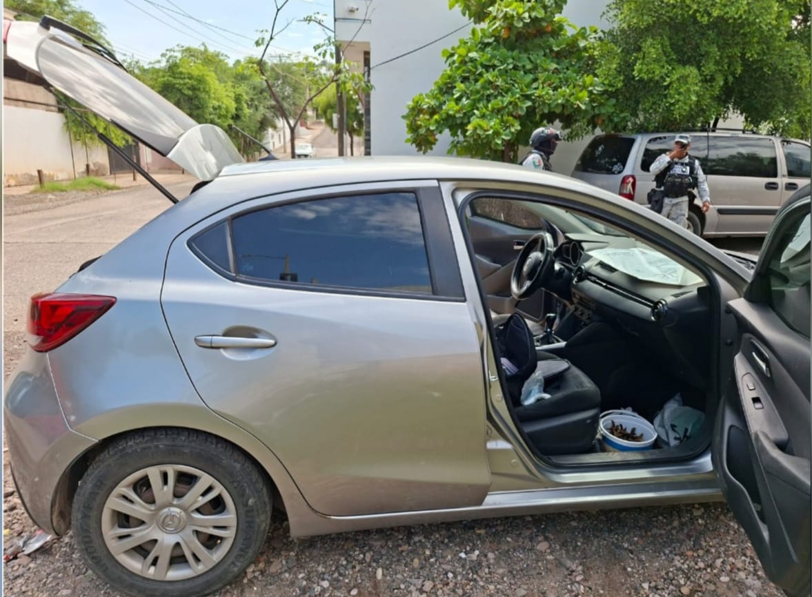 Durante actividades de prevención y seguridad realizadas en la colonia 16 de Septiembre, en Culiacán, se localizó un vehículo en aparente estado de abandono. Al verificar, se corroboró que la unidad cuenta con reporte de robo y, además, en su interior se encontró lo siguiente: