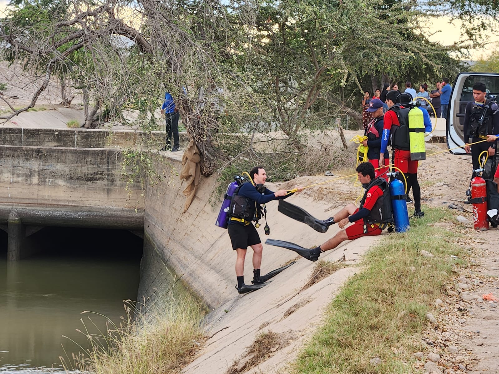 Fue a las 06:30 horas de este sábado cuando elementos de Bomberos Culiacán iniciaron el operativo de búsqueda. Momentos después, hallaron el cuerpo del hombre atorado entre unas ramas en la zona de un sifón del mismo canal.