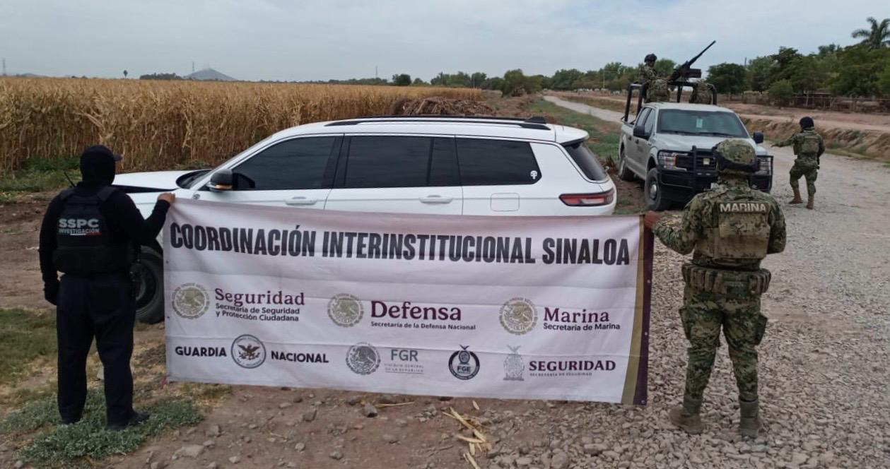 En el municipio de El Fuerte, elementos de la Secretaría de Marina Armada de México y de la Secretaría de Seguridad y Protección Ciudadana, en coordinación con el Ejército Mexicano, la Guardia Nacional, la Fiscalía General de la República, la Fiscalía General del Estado y la Secretaría de Seguridad Pública de Sinaloa, a través de la Policía Estatal Preventiva, localizaron y recuperaron vehículos con reporte de robo en Estados Unidos.