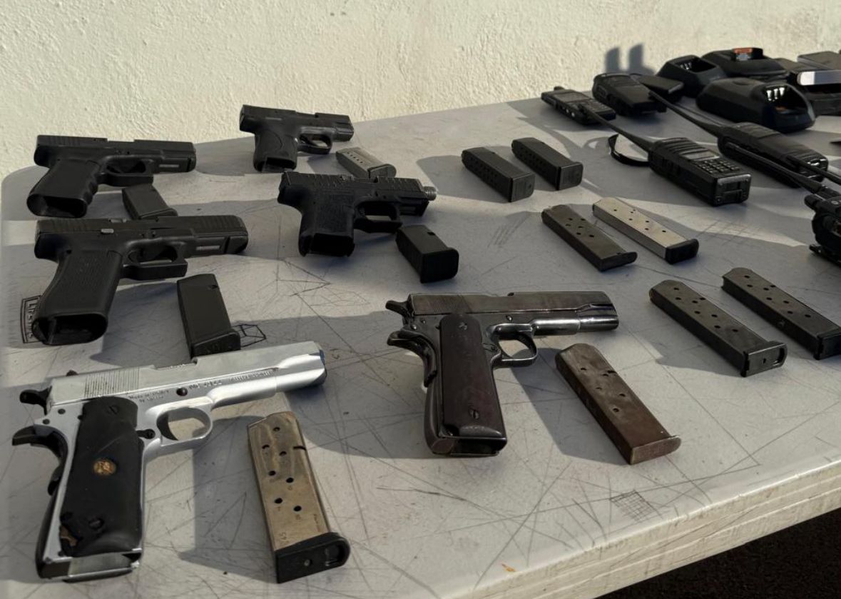 • 4 armas de fuego tipo pistola, calibre 9 mm, con 6 cargadores abastecidos con cartuchos del mismo calibre.