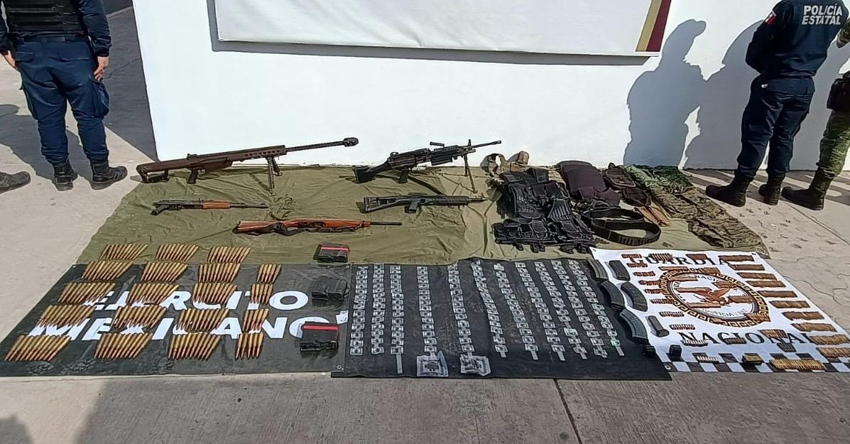 Hallan un fusil Barrett, un ‘cuerno de chivo’, una ametralladora Minimi, cartuchos y equipo táctico tras desmantelar campamento en Elota