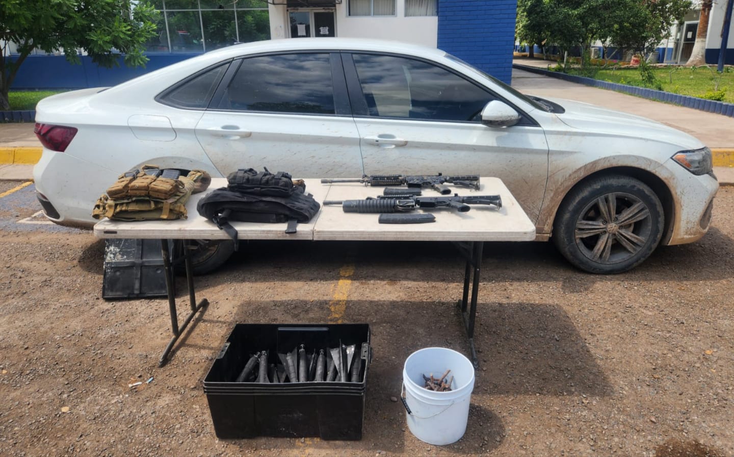 Hallan un Jetta con explosivos, armas, ‘ponchallantas’ y equipo táctico en Río Viejo, Navolato