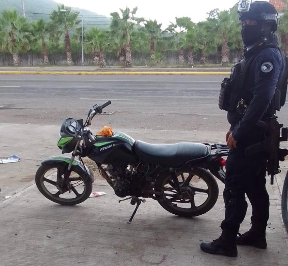 Al continuar con los patrullajes preventivos en el sector Bellavista, los elementos de la PEP ubicaron una motocicleta sin placa de circulación, que también resultó tener reporte de robo.